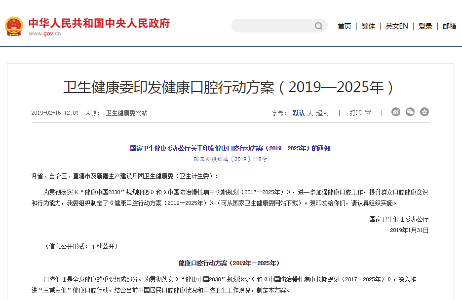 隨著消費(fèi)水平的提升與健康意識(shí)的覺(jué)醒,消費(fèi)者對(duì)口腔健康的重視程度日益增強(qiáng)。國(guó)家衛(wèi)生健康委辦公廳在2019年1月印發(fā)的《健康口腔行動(dòng)方案(2019-2025年)》中明確提出了健康口腔行動(dòng)工作指標(biāo)。方案倡導(dǎo),在2025年,成人每天2次刷牙率(%)將由2016年的36.1%提升至2025年的45%,并指出要推動(dòng)口腔健康制造業(yè)創(chuàng)新升級(jí)。