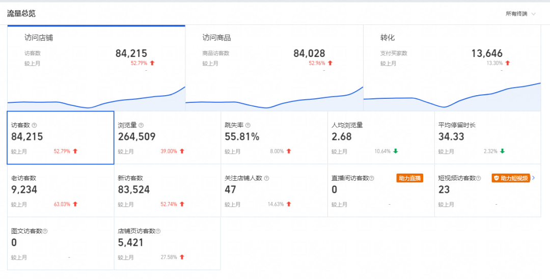 如何快速擴大流量?臺轍表示,“對醫廢新品進行推送,通過直通車、引力魔方、萬相臺多重計劃打造品類。在7月市場熱度最高期,保持店鋪產品的流量,擴大店鋪的流量來源。最終,店鋪整體流量在7月上升了50%。”