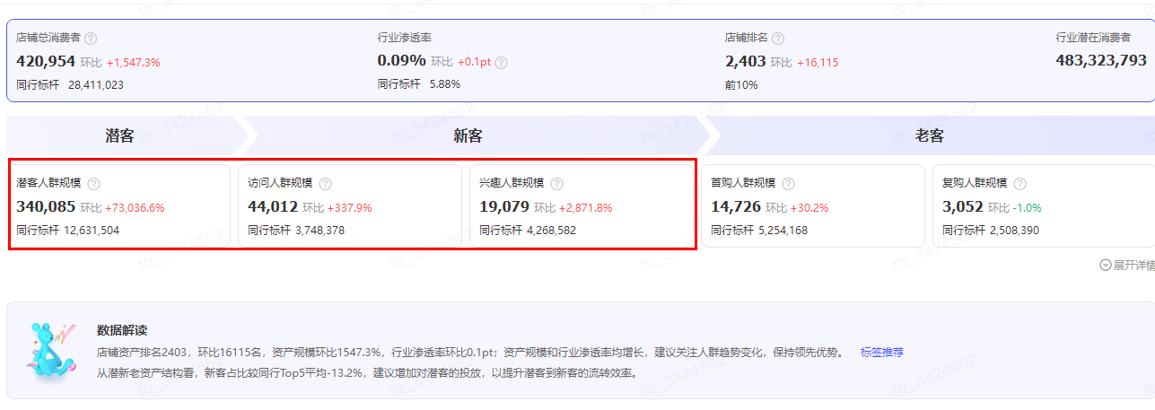 有望對店鋪的提升進行了第一步操作,利用站外種草打造良好的品牌心智,品牌潛新資產結構數據得到明顯提升。