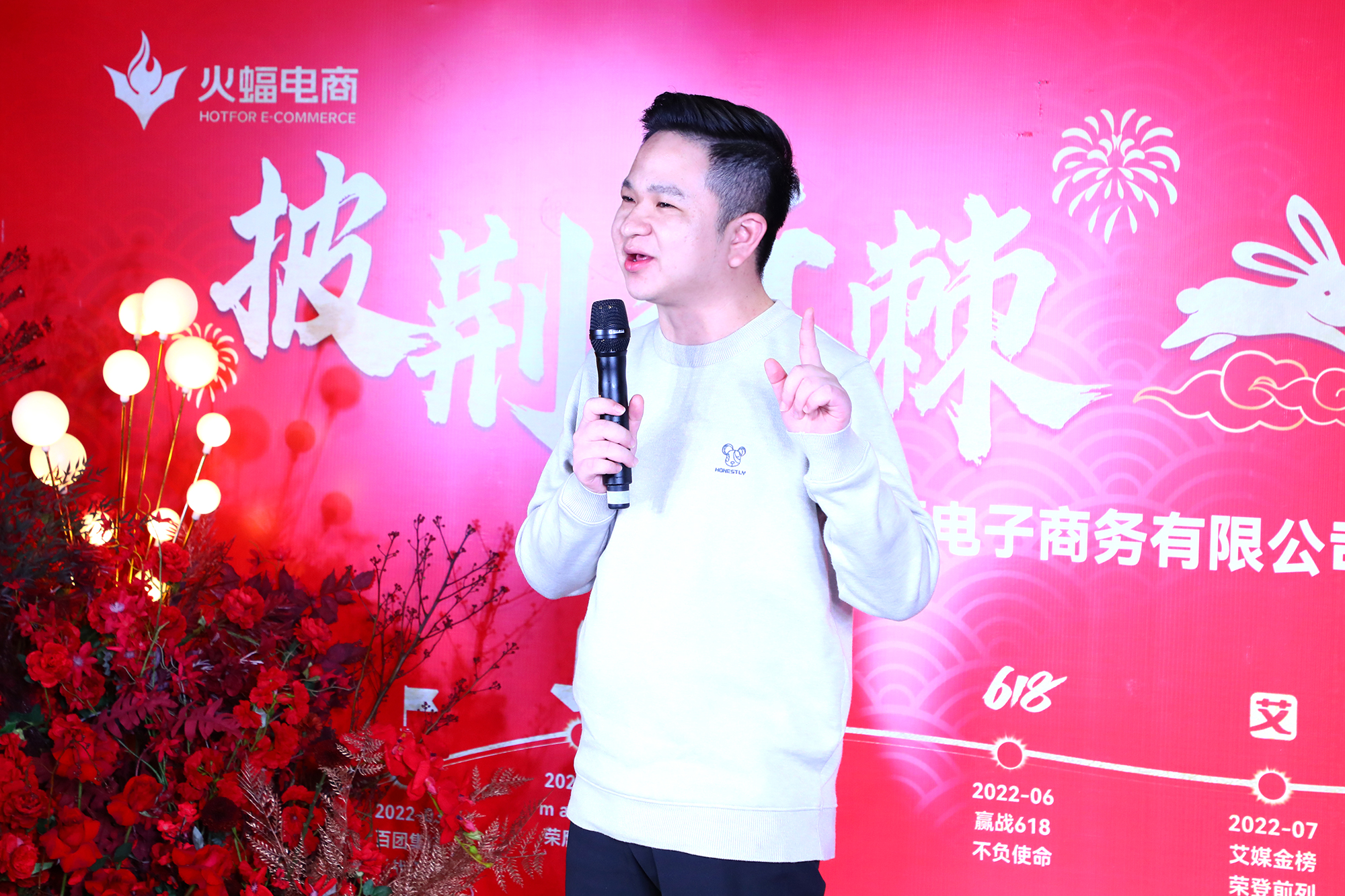既是向光而行,也是向新而行,火蝠電商CEO鐘雨清首先發表開場致辭,就2023火蝠戰略的規劃做了激情宣講,他表明2022年如果按游戲模式類舉就像是“地獄模式”,火蝠遭遇了上海封城,廣州封城等各種困境,但同時去年火蝠也收獲了最多獎項......回望整年,計劃不及變化,去年年初做的所有規劃都被打破,但2022年火蝠也開辟了新的抖音賽道并取得突破性增長,希望2023年抖音業績能實現更大突破,同樣的在品牌運營上火蝠電商也收到來自更多大品牌商的青睞,未來會考慮新增運營項目部,爭取2023年業績目標能超越完成。