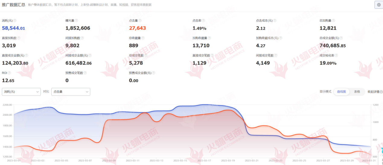 在店鋪流量上,接手前訪客主要來源于直播,單一渠道顯然不符合多維度運營的要求。合作之后,火蝠電商結(jié)合市場增量趨勢,聚焦有美容保健需求的特定人群,在站內(nèi),配合直通車、引力魔方、萬相臺三大營銷工具組合加碼完成大量曝光蓄水并實現(xiàn)成交金額爆發(fā)。直通車方面,利用「達(dá)摩盤」優(yōu)選人群,剔除不精準(zhǔn)展現(xiàn)量和點擊量。而后針對「品牌詞」「趨勢明星」「產(chǎn)品核心詞」等,集中火力為店鋪爆品搭建專項計劃組;引力魔方方面,依舊是老計劃進(jìn)行刪減調(diào)優(yōu),以店鋪拉新和店鋪行為人群進(jìn)行投放;萬相臺方面,以日常拉新和貨品加速交替打法進(jìn)行推廣,當(dāng)貨品加速推廣進(jìn)入衰退期后,及時根據(jù)節(jié)奏替換新計劃。結(jié)果是,3月「直引萬」點擊率與轉(zhuǎn)化率較2月份整體上升。