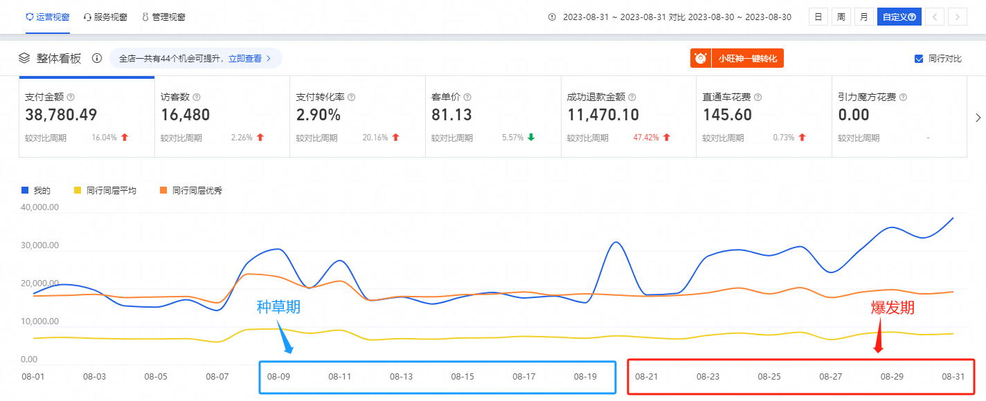 確定主推款,需要貼合市場需求,也要根據同行競店數據結合銷售情況來判斷。在火蝠運營人員通途的幫助下,林海的店鋪,集中引流主推款,有效帶動了整個店鋪的瀏覽量和訪客量,在平臺上得到了更多的展現(xiàn)機會。