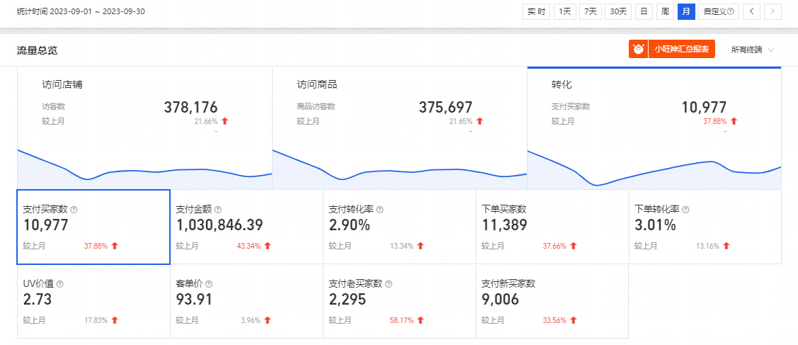 九月底,林海的店鋪抓住了家居服飾行業(yè)的熱感式“上新引爆”,新品曝光量26W+,成為不少年輕女孩加入購物車里的寶藏清單,主推品單月賣出1400+件,帶動店內其他產品銷量,支付買家數達1W+。