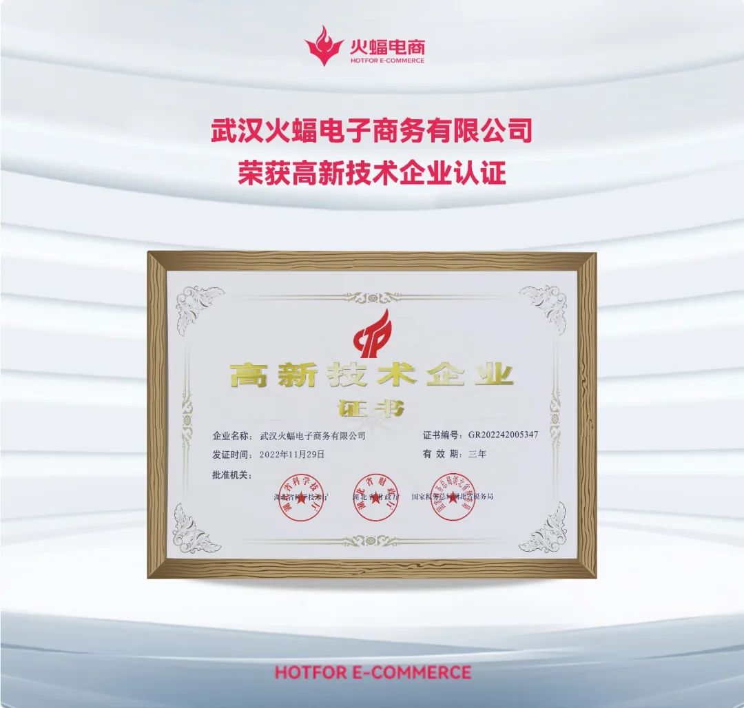 喜訊 | 恭賀火蝠電商再次榮獲湖北省“高新技術企業”認證